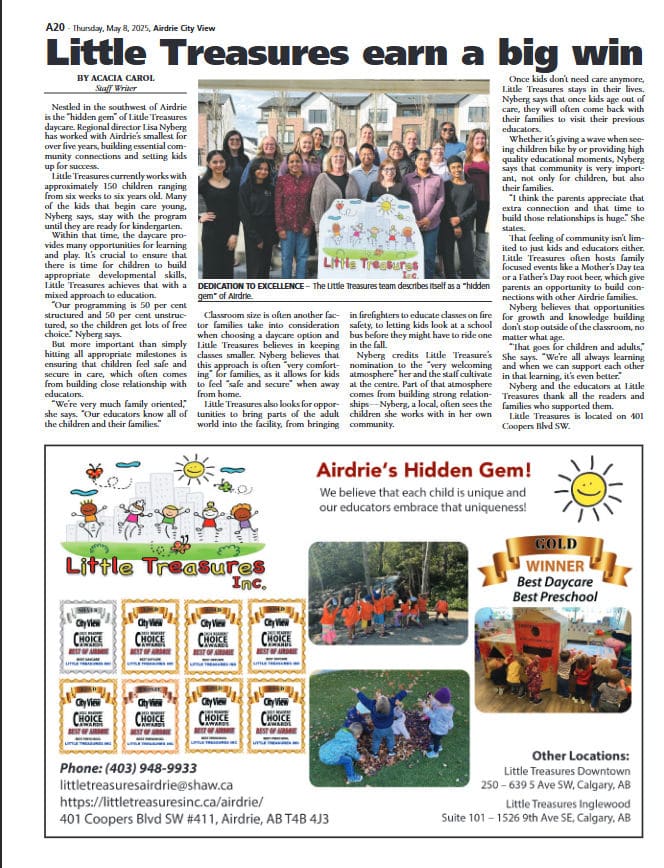 The Best of Airdrie Award for our Little Treasures Airdrie centre